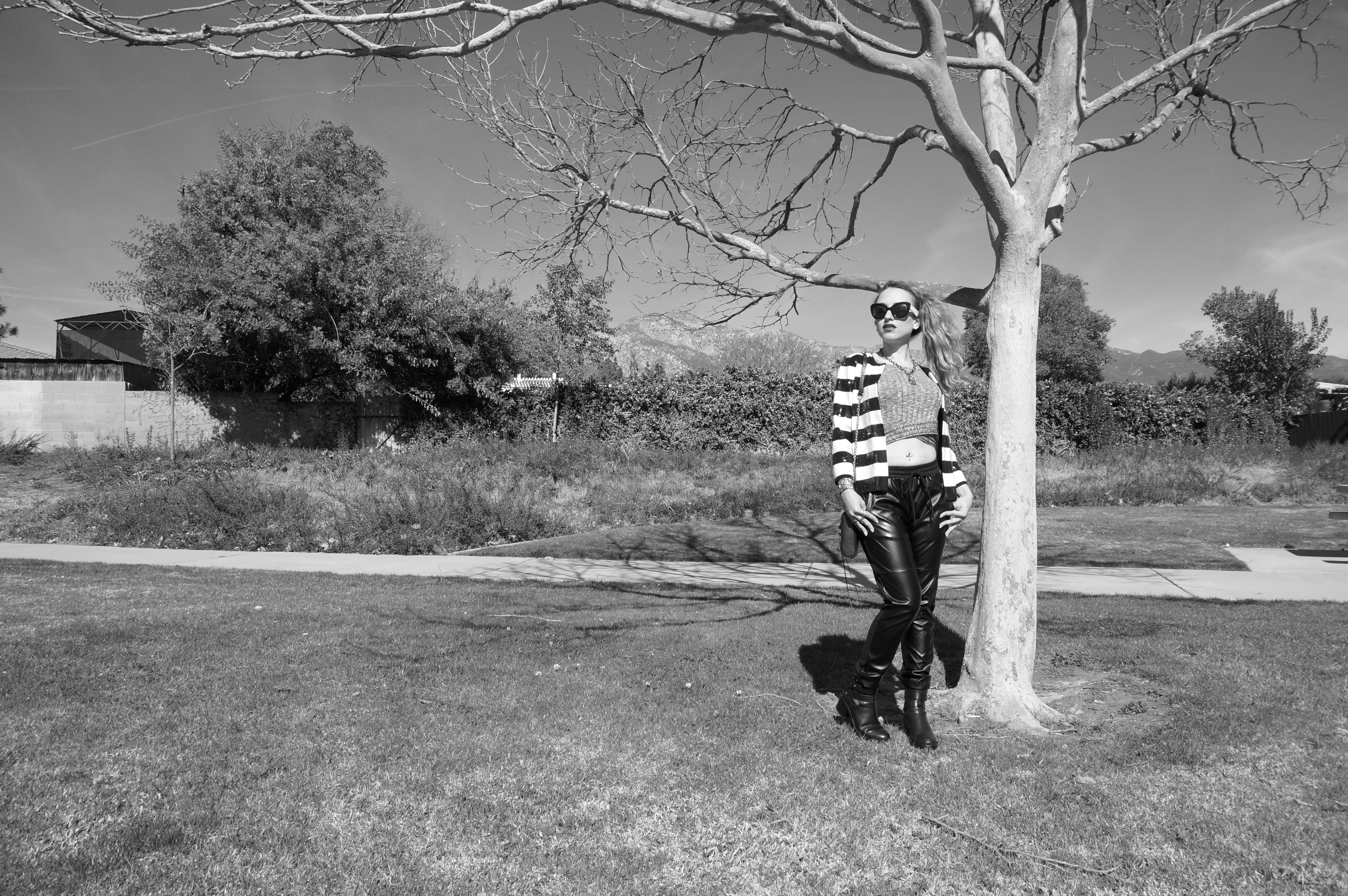I love the addition of the sequined striped jacket to add a graphic element and incorporate different textures. I knew I’d want to wear my Dolce Vita moto boots with these pants and the Rebecca Minkoff Mini MAC provides just the right pop of color. I was super stoked with how this outfit came together and couldn’t wait to wear it out. I topped off the look with a pop of dark red (MAC Viva Glam) lipstick. I’m totally happy doing ladylike one day and sporty chic the next. What do you think? How do you like to experiment with your style?? Would love to hear your thoughts! Xo